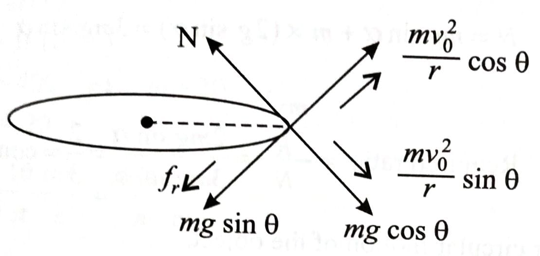 A car of mass 'm' moves on a banked road having radius 'r' and banking angle . To avoid slipping from banked road, the maximum permissible speed of the car is . The coefficient of friction between the wheels of the car and the banked road is [2025]