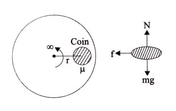 A coin is placed on a disc. The coefficient of friction between the coin and the disc is μ. If the distance of the coin from the center of the disc is r, the maximum angular velocity which can be given to the disc, so that the coin does not slip away, is [2024]