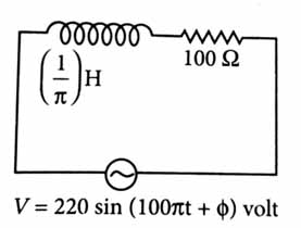 An ac source is connected in the given circuit. The value of ϕ will be [2023]