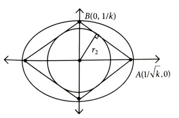 Consider ellipses Let be the circle which touches the four chords joining the end points (one on minor axis and another on major axis) of the ellipse . If is the radius of the circle , then the value of is [2023]