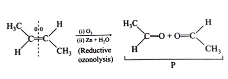 Reductive ozonolysis of one mole of but-2-ene gives 2 moles of ethanal (P).