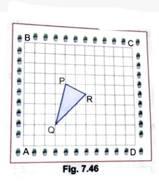A garden is in the shape of a square. The gardener grew saplings of Ashoka tree on the boundary of the garden at a distance of 1 m from each other. He wants to decorate the garden with rose plants. He chose a triangular region inside the garden to grow them.