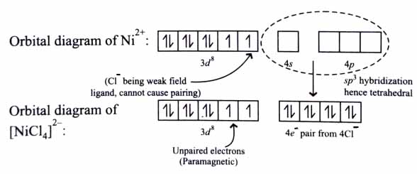 From the magnetic behaviour of (paramagnetic) and (diamagnetic), choose the correct geometry and oxidation state. [2025]