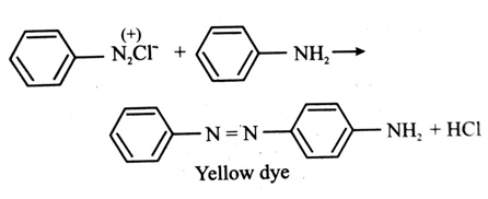 If 279 g of aniline is reacted with one equivalent of benzenediazonium chloride, the maximum amount of aniline yellow formed will be ______ g. (nearest integer)
