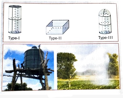 Pankaj’s father needs to purchase a new water tank for irrigating the fields. To find the right one, they visit a shop. The shopkeeper shows them three different types of water tanks, as shown below.