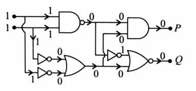 In the digital circuit shown in the figure, for the given inputs the