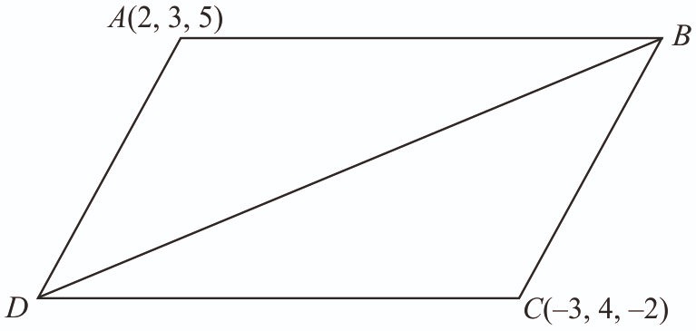 Let A(2, 3, 5) and C(–3, 4, –2) be opposite vertices of a parallelogram ABCD. If the diagonal BD→=i^+2j^+3k^, then the area of the parallelogram is equal to [2024]