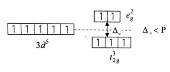 As is a weak field ligand, splitting energy is less than pairing energy (P).