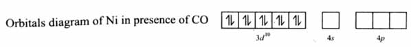 4s orbital becomes vacant. Ni then undergoes hybridization and lone pairs from CO are accommodated in orbitals.