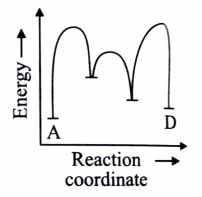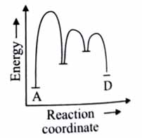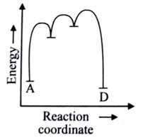 Reactant A converts to product D through the given mechanism (with the net evolution of heat):
