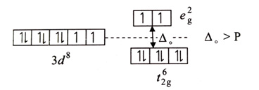Since coordination number of the complex is 6, it is an octahedral complex. Octahedral splitting of d orbitals is shown below: