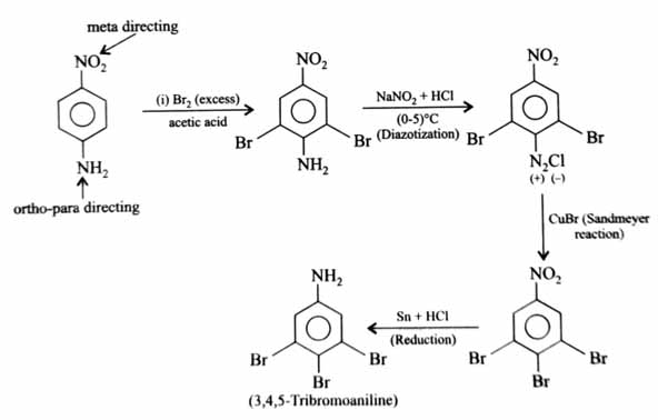 The sequence from the following that would result in giving predominantly 3, 4, 5-tribromoaniline is: [2025]