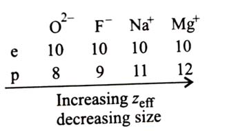 For isoelectronic species, more are number of protons, more is effective nuclear charge hence smaller is the size.