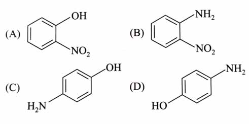 (A) and (B) are steam volatile because of intramolecular hydrogen bonding.