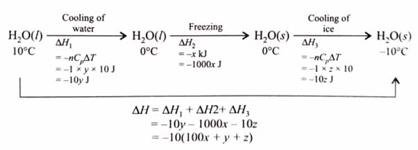Total enthalpy change for freezing of 1 mol of water at 10°C to ice at -10°C is ____