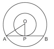 Let O be the centre of the concentric circle of radii 5 cm and 3 cm respectively. Let AB be a chord of the larger circle touching the smaller circle at P