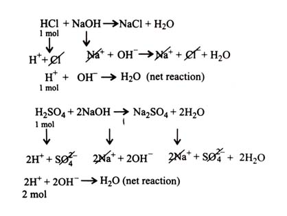 Net reaction of NaOH with results in combination of two moles of with two mol of whereas, net reaction of NaOH with HCl results in combination of one mol of with one mol of . Thus y is twice of .