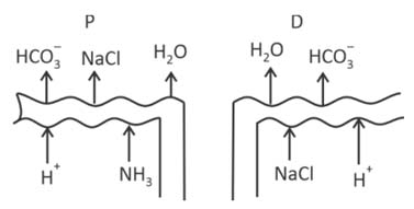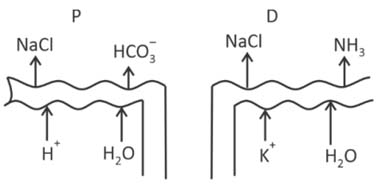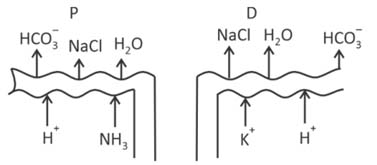 Which of the following diagrams is correct with regard to the proximal (P) and distal (D) tubule of the Nephron. [2025]