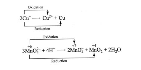 In a disproportionation reaction an element in one oxidation state is simultaneously oxidised and reduced. (A) and (B) are disproportionation redox reactions.