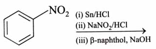 Aromatic primary amines can be confirmed by azo dye test. Primary amine e.g. aniline reacts with nitrous acid generated in situ by the reaction of sodium nitrite with HCl at 0–5 °C to produce diazonium salt. This couples with -naphthol to give a scarlet red dye, which is sparingly soluble in water.