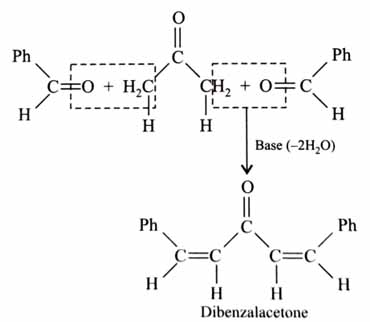 For 100% yield of the reaction, 2 mol of benzaldehyde give 1 mol of dibenzalacetone, so 0.05 mol of benzaldehyde give 0.025 mol of dibenzalacetone.