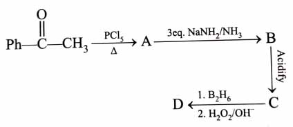 Total number of hybridised carbon atoms in product D is _____. [2025]
