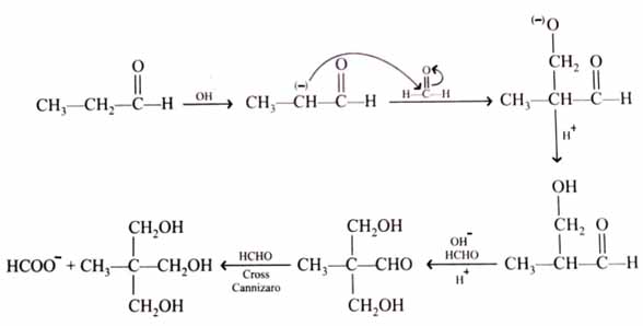 2 mol of HCHO undergo cross aldol condensation with 1 mol of . The product formed after that undergoes cross Cannizzaro reaction with HCHO.