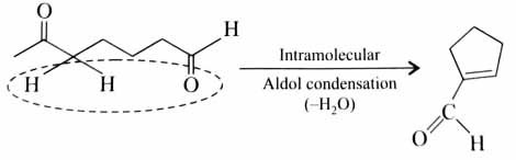Formation of five membered rings is preferred over formation of seven membered rings in intramolecular aldol condensation.