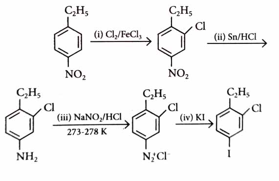 Choose the correct sequence of reagents in the conversion of 4-nitrotoluene to 2-bromotoluene. [2023]