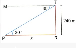Let TR be the tower, observer at point T, P be the boat and PR = x.