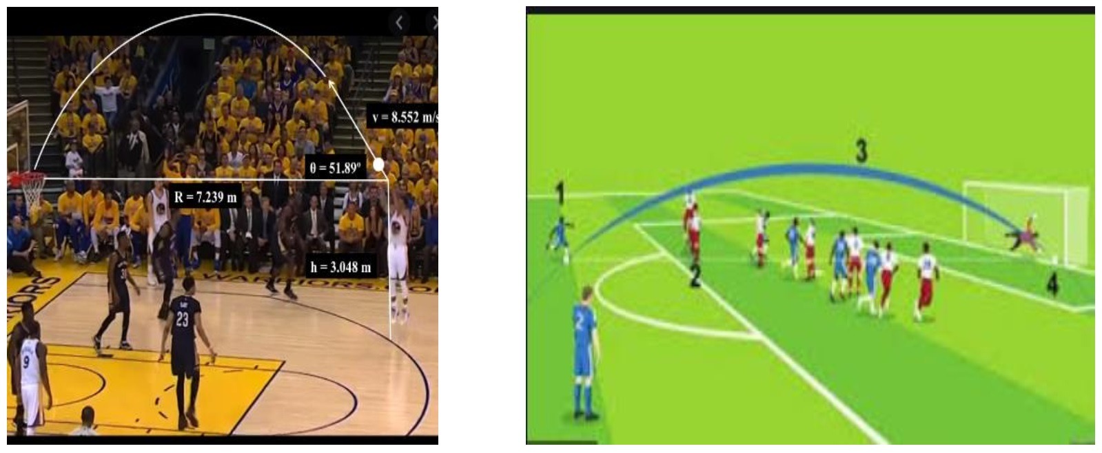 Basketball and soccer are both played with a spherical ball. Although athletes dribble the ball in both sports, a basketball player uses their hands, while a soccer player uses their feet. of both the soccer ball and the basketball forms a parabola, representing a quadratic polynomial.