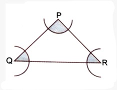 In the given figure, arcs have been drawn with radii 14 cm each and with centres P, Q and R. Then: