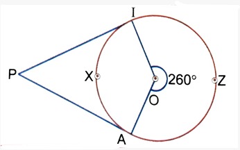 (iii) (a) If arc IZA subtends an angle of 260° at the centre of the circle, then find ∠IPA