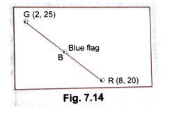 (iii) (a) If Rashmi has to post a blue flag exactly halfway between the line segment joining the two flags, where should she post her flag?