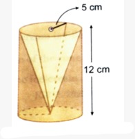 Assertion (A): From a solid cylinder whose height is 12 cm and diameter is 10 cm, a conical cavity of same height and same diameter is hollowed out. Volume of the cone is