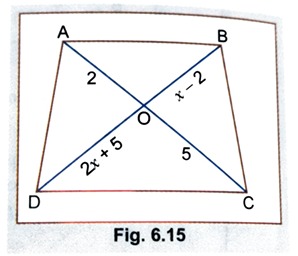 AO/OC = OB/OD ⇒ 2/5 = (x - 2)/(2x + 5)