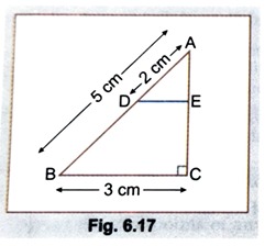 In the given triangle (Right angled at C), DE || BC, AB = 5 cm, AD = 2 cm and BC = 3 cm. Using BPT/Thales theorem: