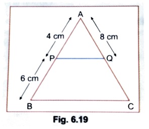 In the given triangle ABC, PQ || BC. If PB = 6 cm, AP = 4 cm and AQ = 8 cm. Then