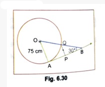 In the given figure, AB is one such tangent to a circle of radius 75 cm. Point O is centre of the circle and PQ is parallel to OA