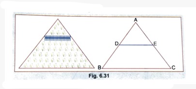 A farmer had a triangular piece of land. He put a fence, parallel to one of the sides of the field as shown in the figure.
