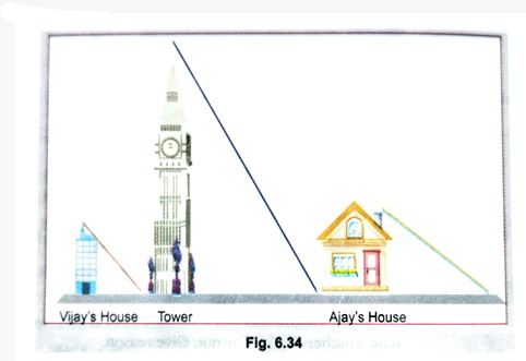 At the same time, the tower casts a 50 m long shadow on the ground, and Ajay’s house casts a 20 m long shadow on the ground.