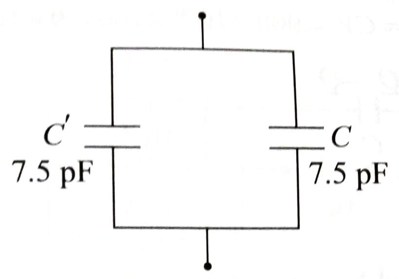 Finally equivalent capacitance () = 7.5 + 7.5 = 15 pF