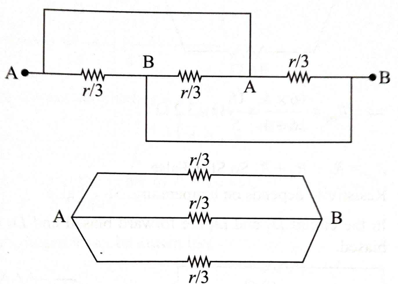 Now, there will be 5 parts, each of resistance , they are connected in series.