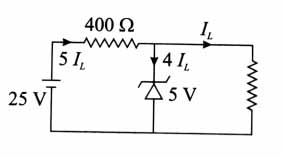 For a 400 resistor connected in series, the zener current is found to be 4 times load current. The load current and load resistance are: [2025]