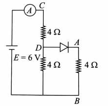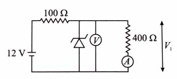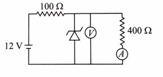 In the following circuit, the reading of the ammeter will be (Take Zener breakdown voltage = 4V) [2025]