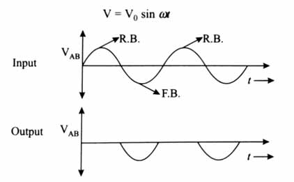 Due to the diode the current will be allowed only along B to A through the resistor. Hence will have only negative values i.e., the following graph represents the output voltage .