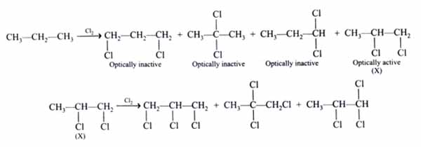Propane molecule on chlorination under photochemical condition gives two di-chloro products, “x” and “y”. Amongst “x” and “y”, “x” is an optically active molecule. How many tri-chloro products (consider only structural isomers) will be obtained from “x” when it is further treated with chlorine under the photochemical condition. [2025]