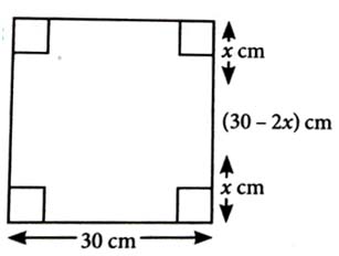 A square piece of tin of side 30 cm is to be made into a box without top by cutting a square from each corner and folding up the flaps to form a box. If the volume of the box is maximum, then its surface area (in ) is equal to [2023]