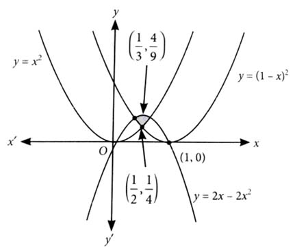 If the area enclosed by the parabolas and is equal to the area enclosed by and , then is equal to _______ . [2023]