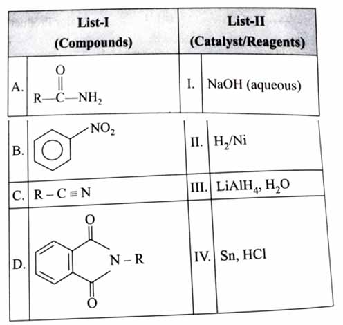 Match the compounds (List–I) with the appropriate Catalyst/Reagents (List–II) for their reduction into corresponding amines.